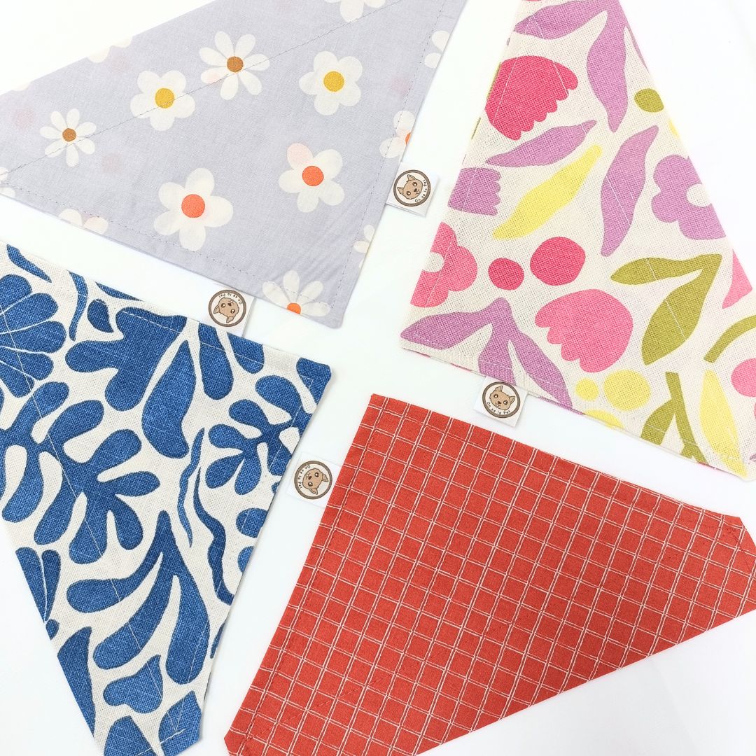 Nos bandanas ajoutent une touche stylée aux accessoires de votre chien. Faciles à enfiler sur le collier, ils sont cousus à la main dans notre atelier, pour un style encore plus unique.